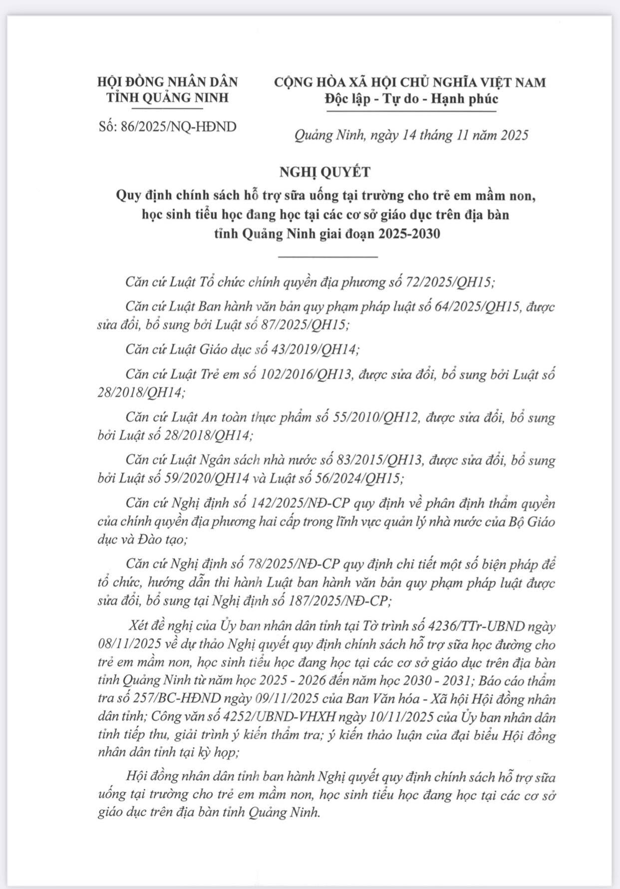 - Trẻ được uống sữa vào các ngày học tại trường theo kế hoạch của nhà trường (dự kiến từ tháng 01/2026 và thực hiện theo quy định của Nghị quyết đến hết ngày 31/12/2030).