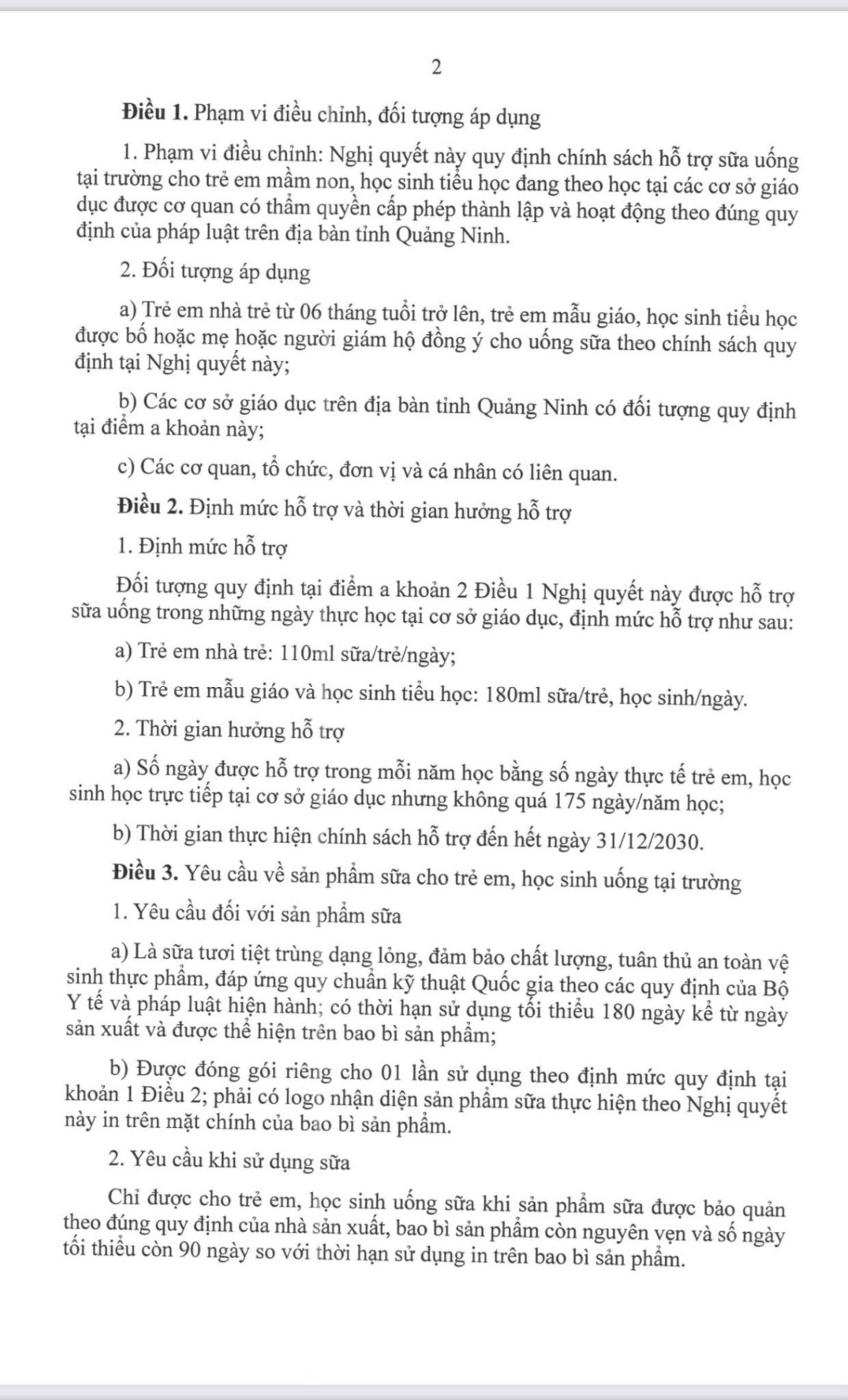 2. Mức hỗ trợ và hình thức uống sữa