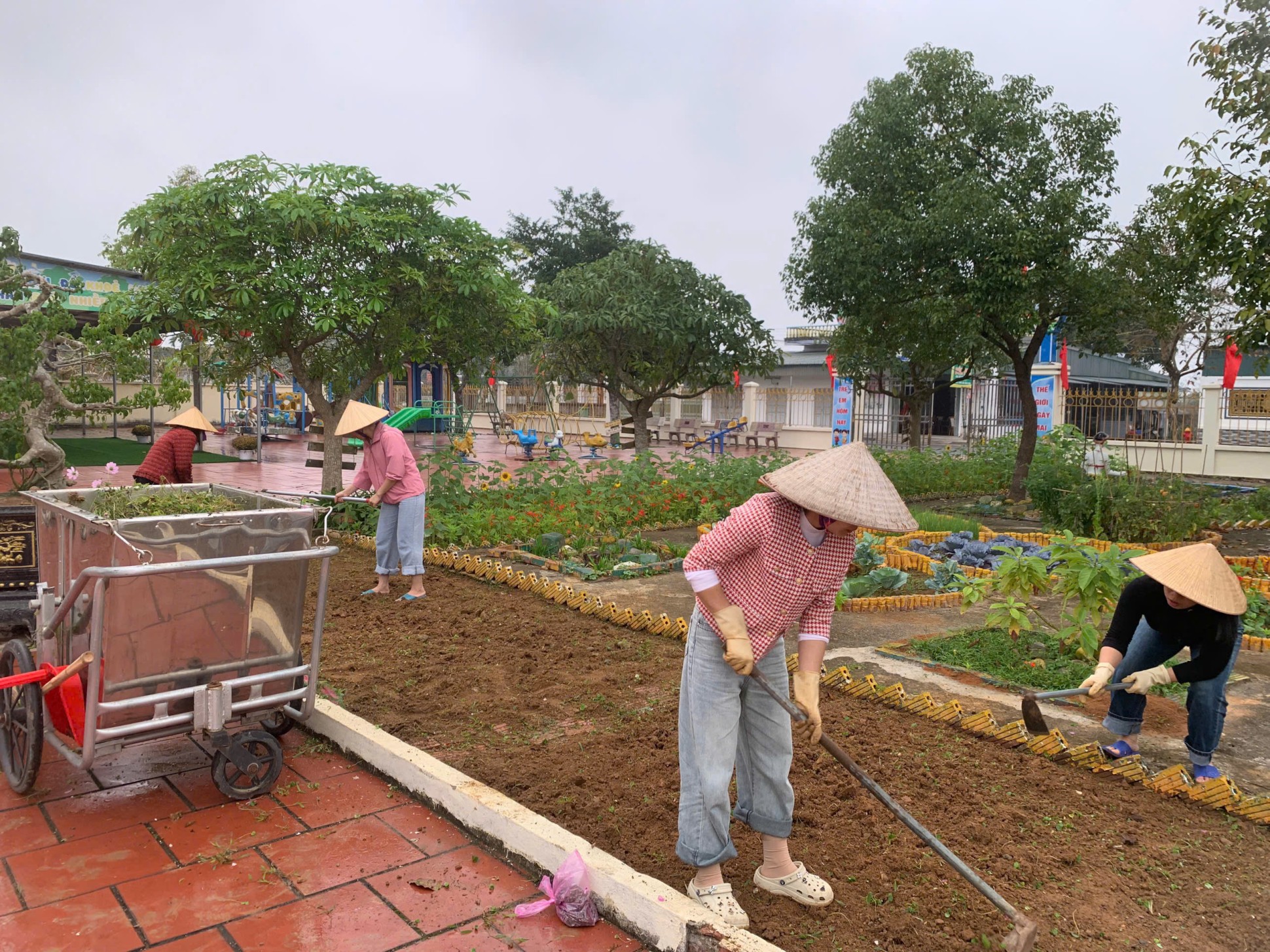 Trường Mầm non Quảng Minh tích cực lao động vệ sinh, chuẩn bị môi trường an toàn, xanh – sạch – đẹp sẵn sàng đón trẻ trở lại sau tết
