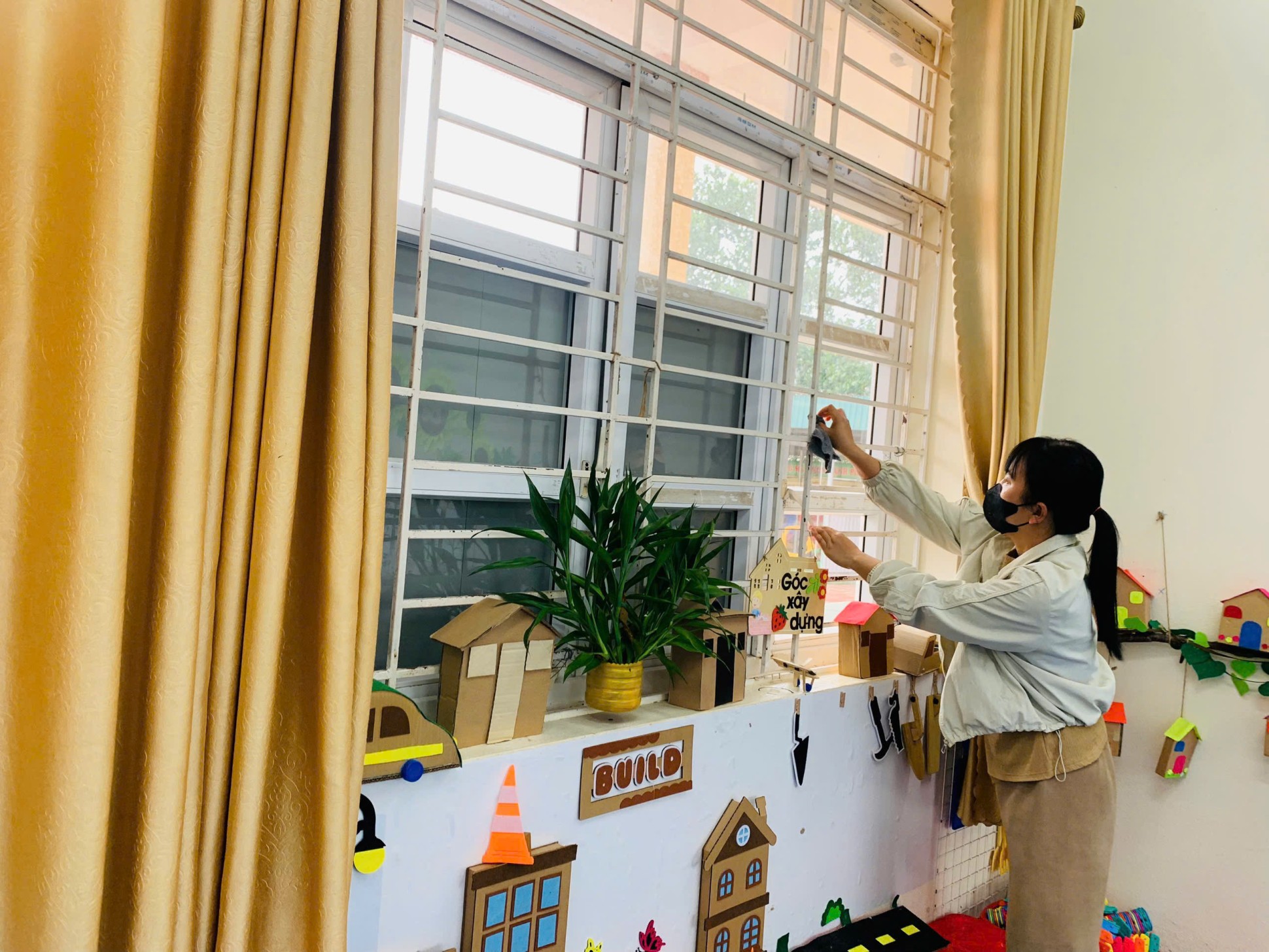 Bên cạnh đó, giáo viên các lớp cũng chủ động trang trí, làm mới góc học tập, góc chơi, tạo không khí tươi vui, ấm áp của những ngày đầu xuân. Mỗi không gian lớp học đều được chăm chút cẩn thận, sẵn sàng chào đón các bé trở lại trường với tâm thế vui tươi, hào hứng.